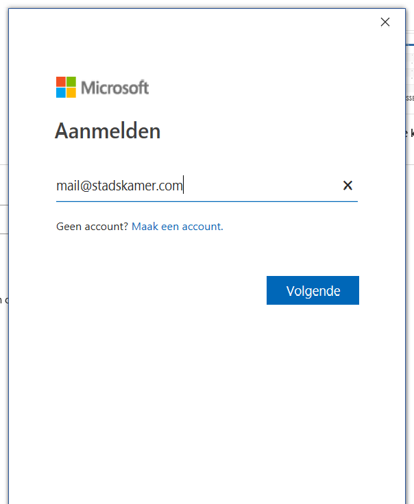 Elke keer als je jouw stadskamer gegevens invult bij word, excel of outlook desktop app, kom je terug op dit scherm en vraagt hij steeds weer om jouw gegevens.
