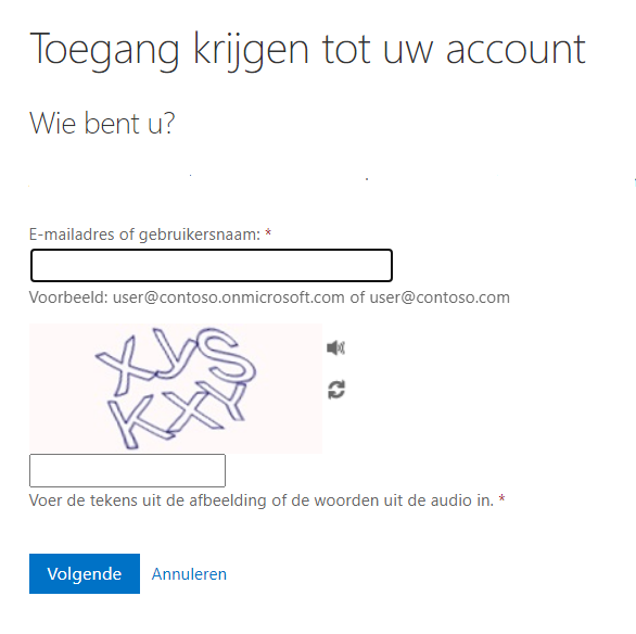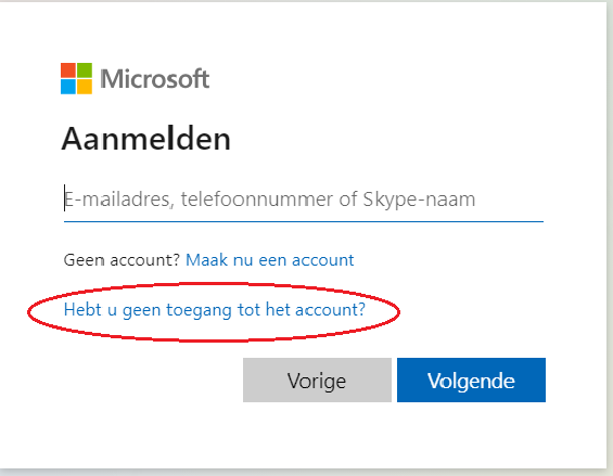 Kies nu “Hebt u geen toegang tot het account?”
